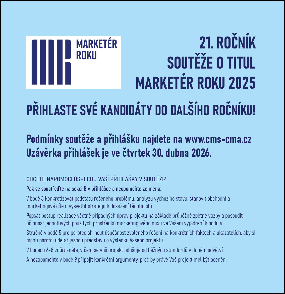 Česká marketingová společnost vyhlásila soutěž o titul Marketér roku 2025, nad níž opět převzala záštitu osobnost světového marketingu prof. Philip Kotler.